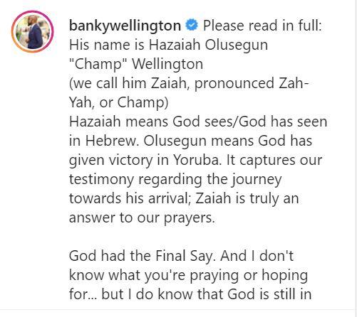 Singer Banky W who welcomed a baby boy with his actress wife few weeks ago made an analysis of the baby’s name, while hinting on his new song premiering on February 26th.