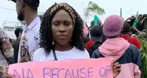 A woman in Nigeria participated in a protest holding a sign that expressed her frustration about being unmarried at 37, attributing it to the country’s governance. The sign read: “Na because of bad government I never see husband at ...