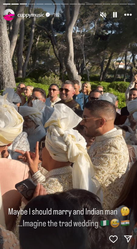 She expressed her fascination and playfully considered the idea of having a similar wedding, saying, “Maybe I should marry an Indian man. Imagine the trad wedding.”