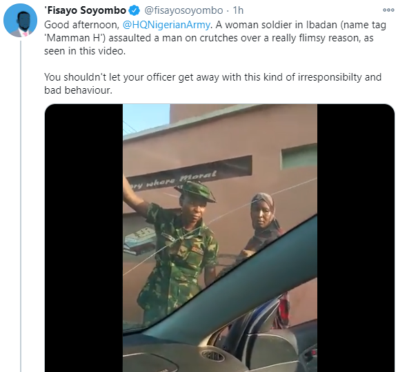 A video of a female soldier seen assaulting a physically challenged man has gone viral.