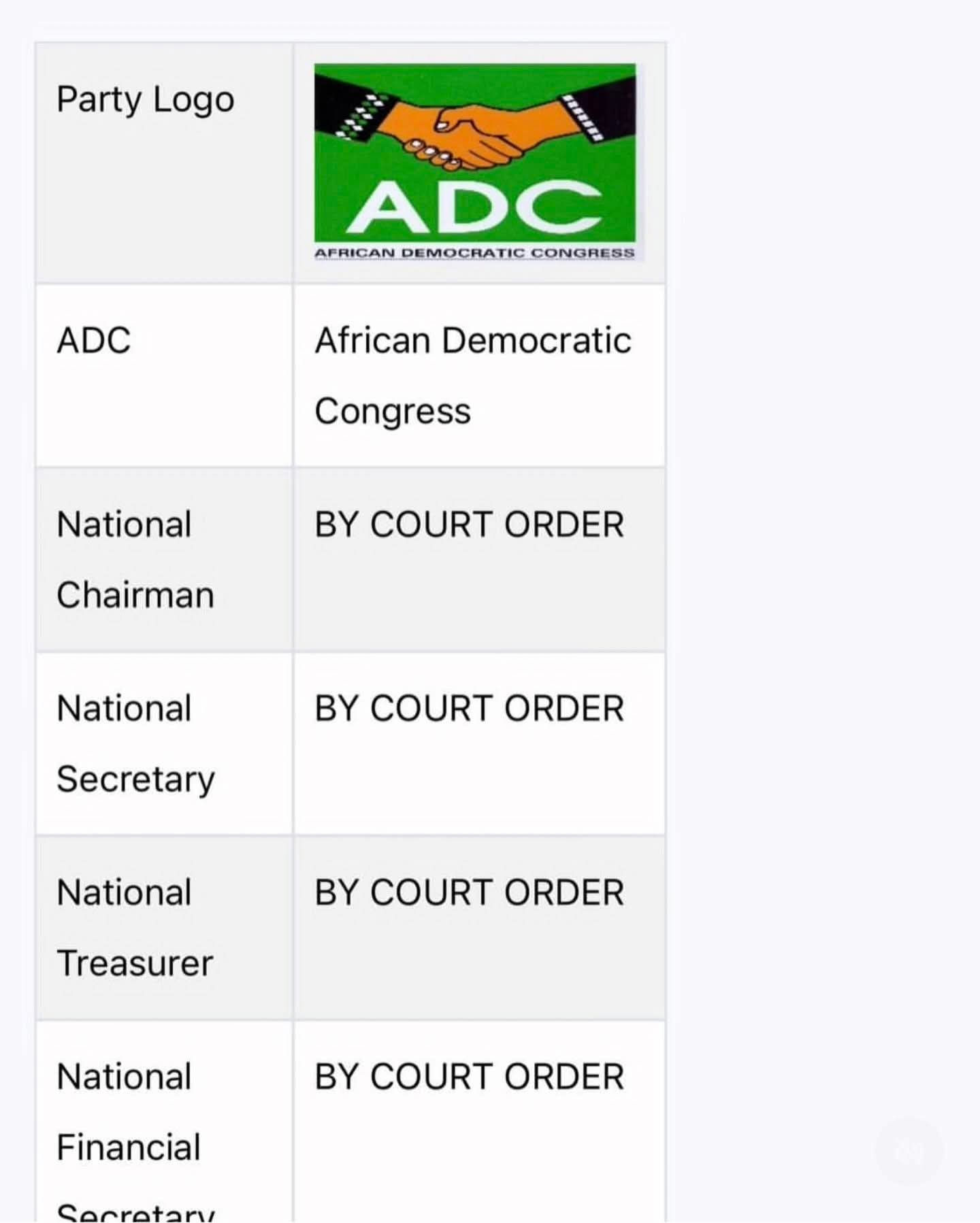 The opposition coalition had, in 2025, adopted the African Democratic Congress (ADC) as a political platform to challenge the ruling All Progressives Congress (APC) in the 2027 general elections.
