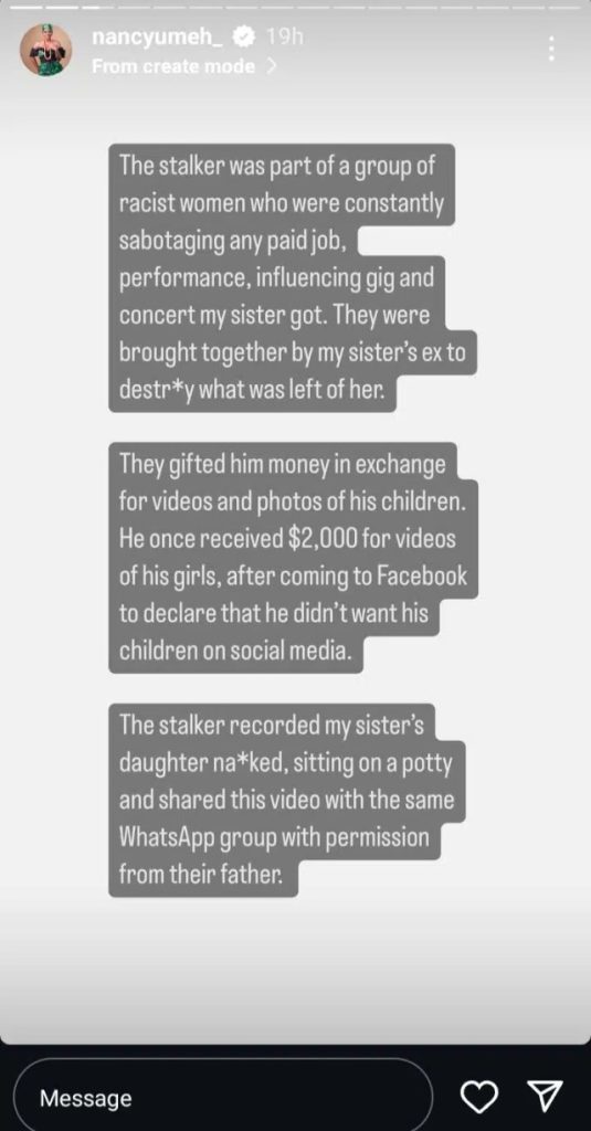 Nancy alleged that Justin had befriended a woman who took explicit photos of their children and shared them with a group of individuals in exchange for money.