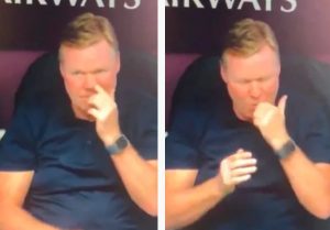 In a stomach churning moment, TV cameras picked up Koeman picking his nose in the dugout before putting his finger in his mouth and smiling.
