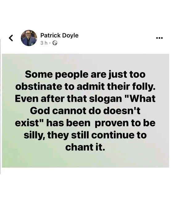 In a short post, Patrick Doyle told his followers that the statement “What God cannot do doesn’t exist” is nothing but outdated in this modern era, yet, some people still go ahead to say it.