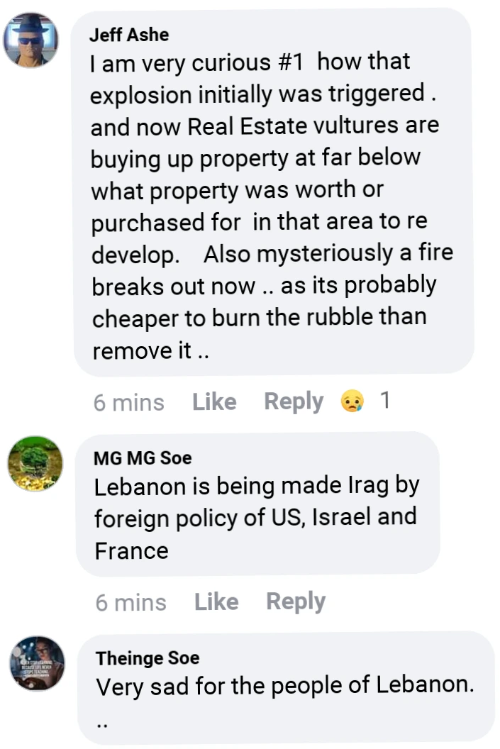 Samuka: “The fire is burning what remained of the blast. Lebanon has really seen a lot. The Syrian war at the door, the Israel-lebanon war, and now conflagration everywhere. May Allah help you through.”