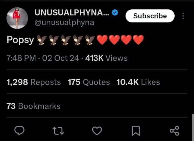 She took to her Twitter account, now known as X, to refer to him as “Popsy,” a term of endearment used by his fans.