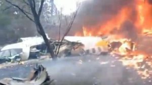 Video shared on social media appeared to show the plane plunging to the ground in a nosedive, disappearing behind a cluster of trees before a large plume of black smoke erupted into the air.
