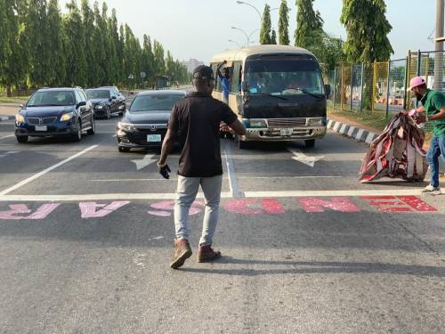 The protesters later moved to the Nigeria Police Force headquarters where they also painted EndSARS on the floor of the entrance of the facility.